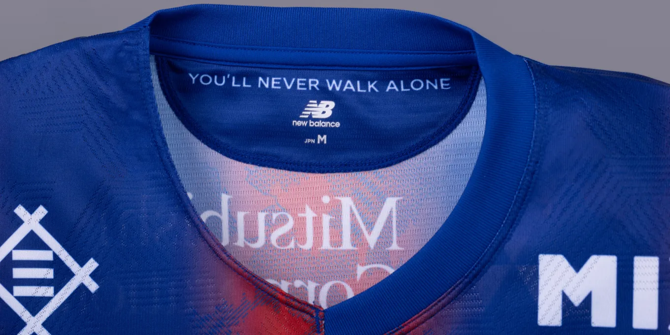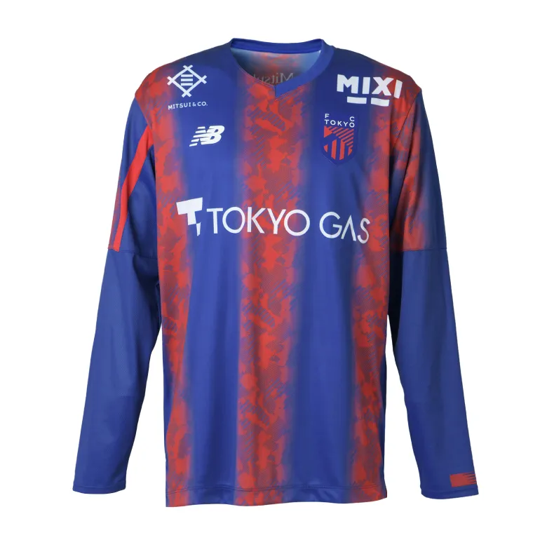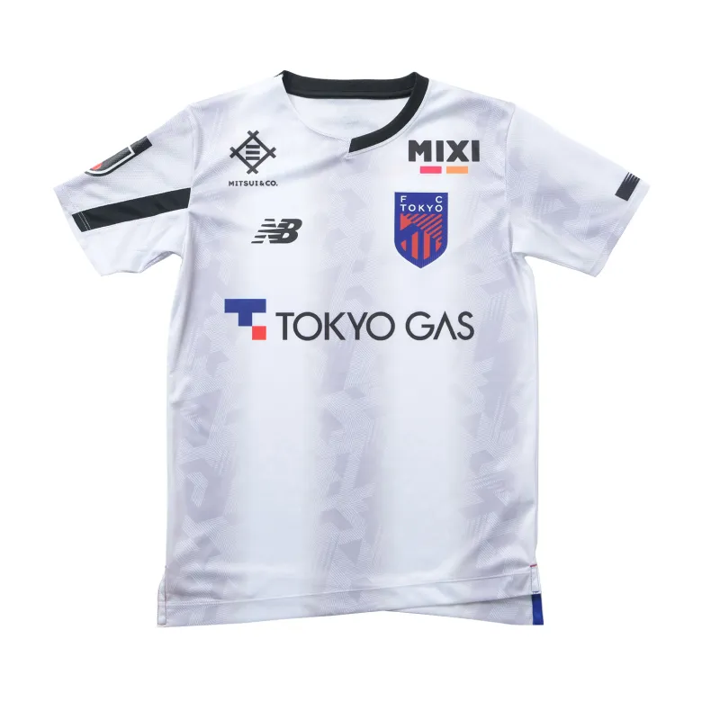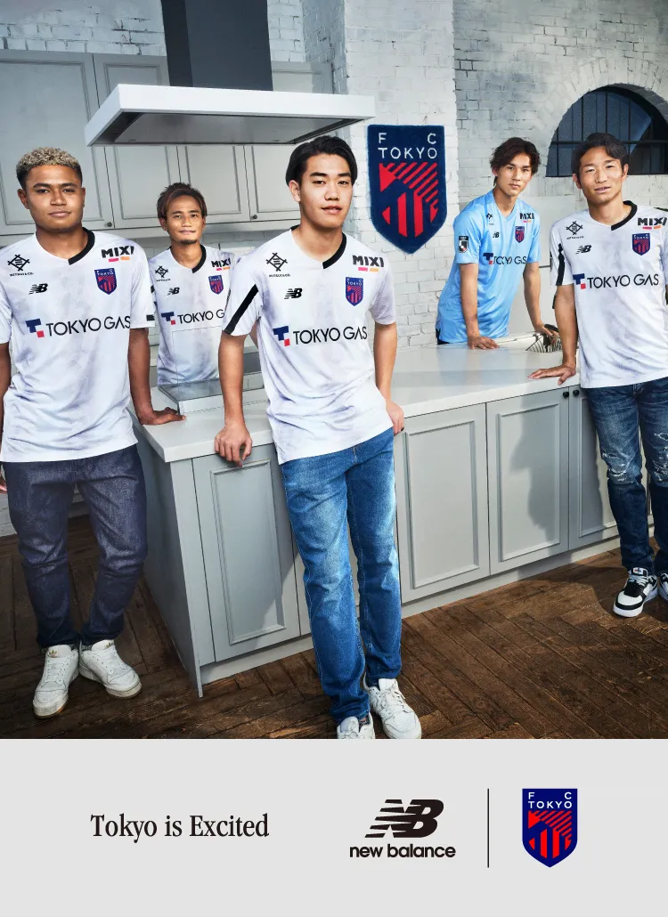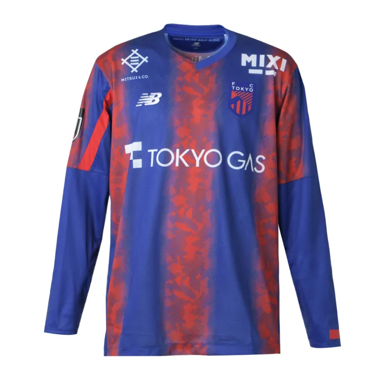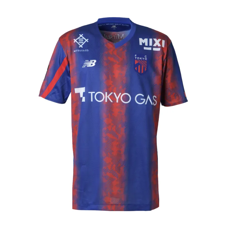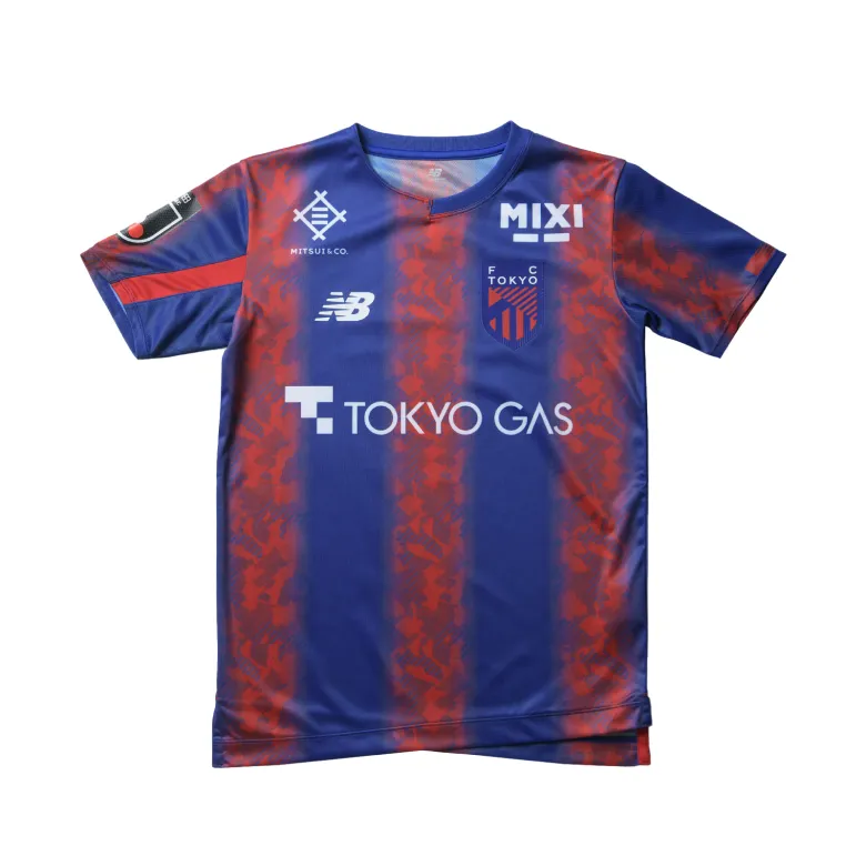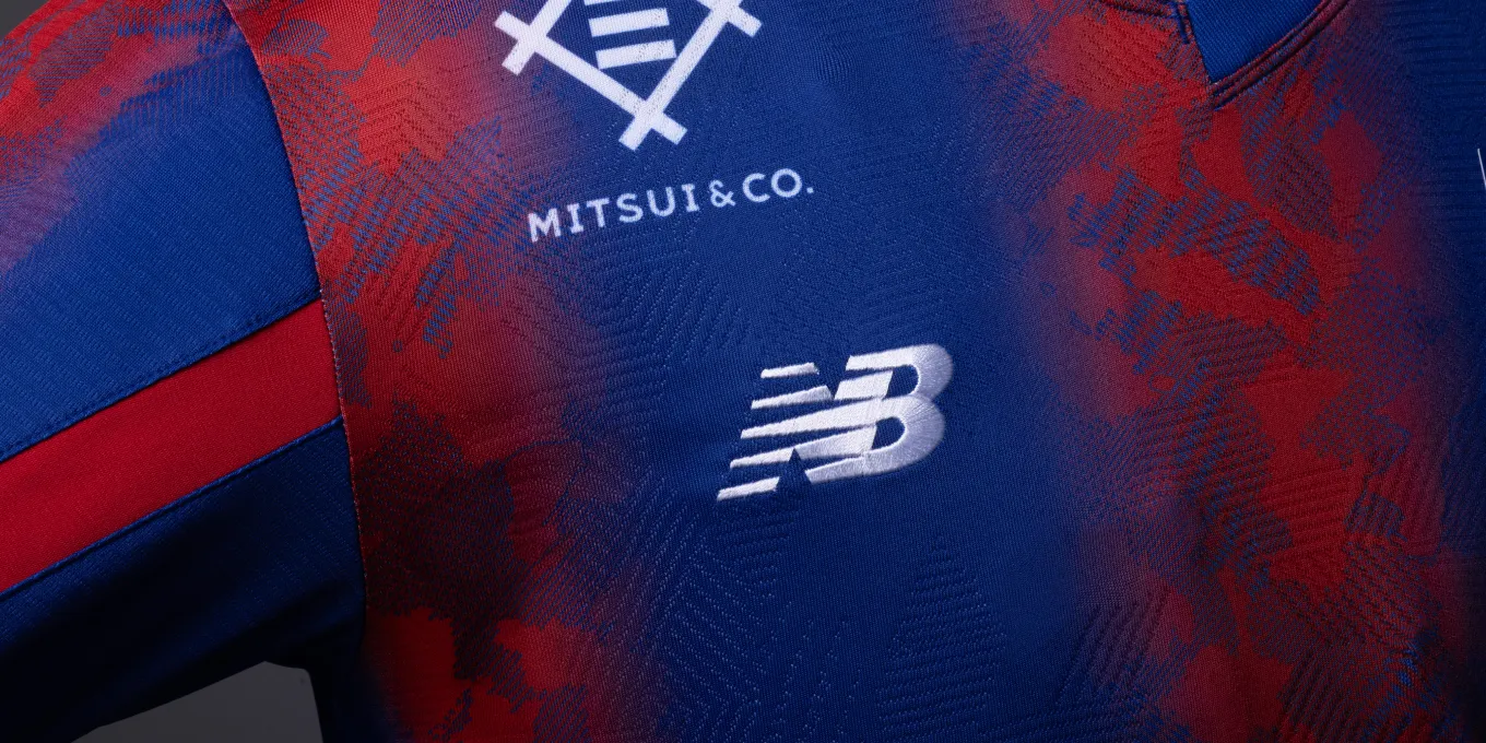 Das neue Trikot von FC Tokyo für die Saison 2024 mit dem neuen Emblem drückt die blauen und roten Streifen, die auch das Symbol des Clubs sind, in einem Farbverlauf aus und verwendet an Kragen, Ärmeln und Saum ein asymmetrisches Muster, das ein stilvolles, typisch tokyoerisches Bild erzeugt. Darüber hinaus ist die Basis des Trikots mit dem Monogramm „Mega Speed“ gestaltet, einem Symbol von New Balance Football für die Saison 24.