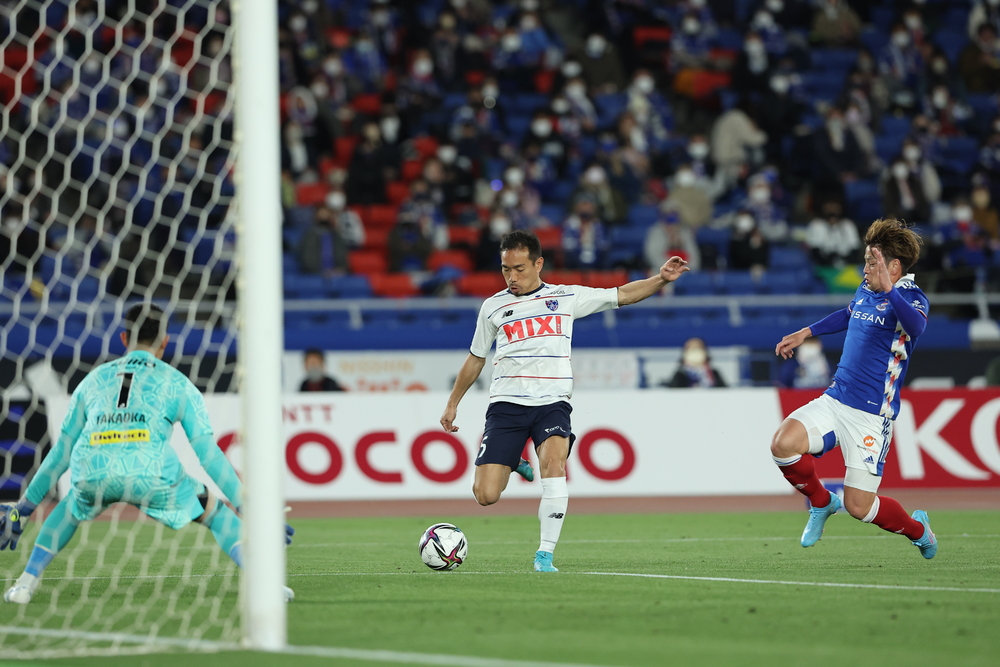 Ab der Mitte der ersten Halbzeit, als der Gegner zunehmend den Ballbesitz hatte, gab Tokyo den hohen Druck nicht auf und schuf Chancen. In der 21. Minute der ersten Halbzeit setzte Konno einen intensiven Pressingangriff auf einen Pass zwischen den Verteidigern des Gegners und eroberte den Ball. Der Schuss im Eins-gegen-eins gegen den Torwart wurde gehalten, und auch die Nachschüsse von Diego und anschließend Adailton wurden von der hartnäckigen Abwehr von Yokohama FM dreimal in Folge geblockt. In der 33. Minute der ersten Halbzeit eroberte Abe den Ball in der Nähe der Mittellinie leicht links, und Diego trieb den Ball nach vorne. Der Ball wurde auf die andere Seite zu Konno gespielt, der aus seinem bevorzugten Bereich mit dem linken Fuß schoss, aber knapp über das linke obere Toreck ging. Beim schnellen Anstoß des Torwarts versuchte Matsuki den Ball zu erobern und sofort einen Schuss abzugeben, doch dieser ging rechts am Tor vorbei.