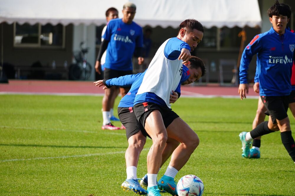 Das Hauptprogramm am Nachmittag bestand darin, die Form vom Aufbau bis zum Abschluss zu überprüfen. Während sie unermüdlich wiederholten, beschleunigte sich das Passspiel immer mehr, und die Spieler arbeiteten daran, den Weg zum Abschluss flexibel zu gestalten, indem sie ihre Entscheidungen trafen, ohne sich auf eine feste Form festzulegen.
