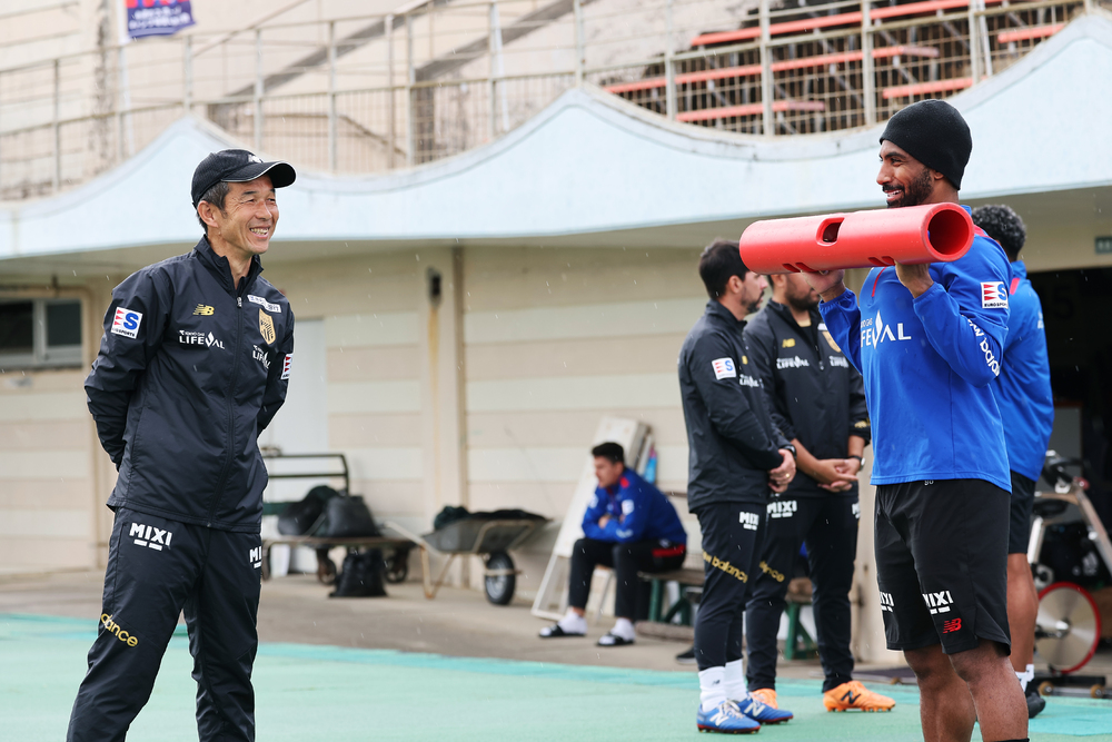 Die vom offiziellen Fotografen ausgewählte Fotoreihe des Camps „FOCUS ON“. Am ersten Tag des Camps in Itoman, Okinawa, wurde dieses Bild ausgewählt, auf dem der Dolmetscher Kazunori IINO und der Spieler Ewerton GAUDINO lächelnd miteinander sprechen. Seit 2000 unterstützt er ausländische Spieler und Mitarbeiter sowohl beruflich als auch privat als Dolmetscher. Er hat auch den Abschied von Diego OLIVEIRA erlebt, der am Ende der letzten Saison seine aktive Karriere beendet hat. Trotzdem sagt Dolmetscher IINO: „Es ist zwar traurig, aber heutzutage kann man überall auf der Welt per Handy miteinander sprechen und sich sehen.“ So verwandelt er Tränen in ein Lächeln und widmet sich weiterhin den Spielern, die jetzt hier sind. Natürlich bleibt die Verbindung zu den Spielern, die die Geschichte in Blau und Rot geprägt haben, auch in Zukunft unverändert.