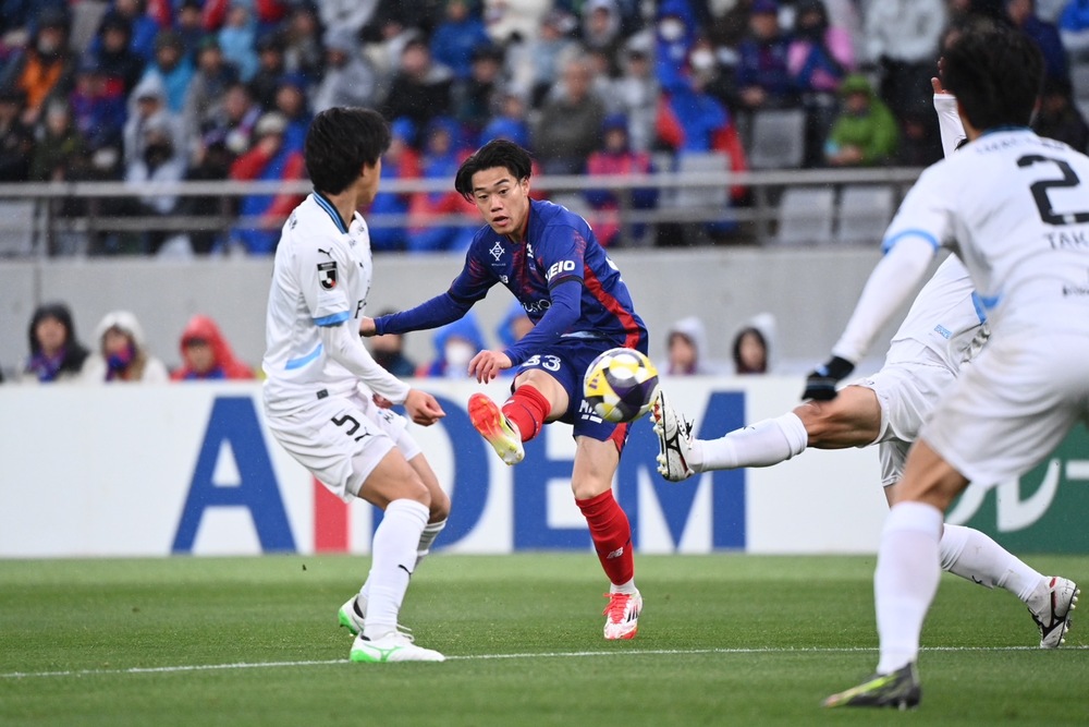 FC Tokyo geriet mit einem Rückstand von zwei Toren in Rückstand. Sie verstärkten das koordinierte Pressing von vorne und zeigten eine aggressive Haltung. Doch als sie versuchten, die Linie nach vorne zu schieben und mit Ballbesitz anzugreifen, verloren sie den Ball durch Druck auf die letzte Linie, was zu einem Gegentor durch einen langen Konter von Kawasaki führte und die Führung der Gegner weiter ausbaute – eine schwierige Situation.