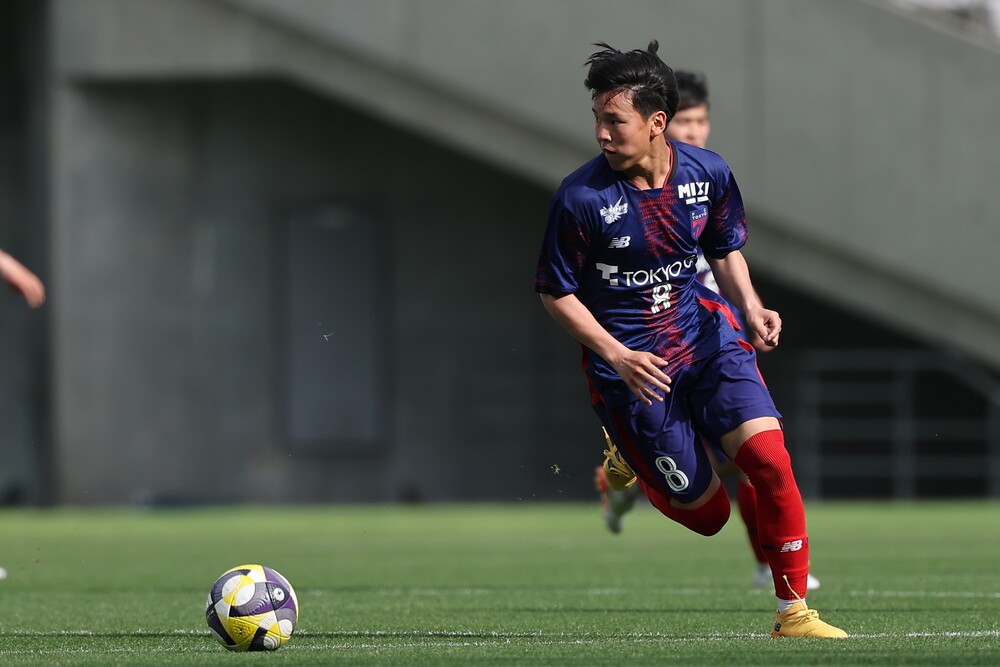 Kaede SUZUKI. Geboren am 5. Juni 2007, 18 Jahre alt. Ein echtes Kind der blau-roten Farben. Bis zur Zeit bei FC Tokyo U-15 Musashi war er hauptsächlich als Innenverteidiger aktiv, doch seit dem Aufstieg in die U-18 hat er auch als defensiver Mittelfeldspieler gespielt, was seine Spielbreite erheblich erweitert hat. Seine präzise Schusstechnik, mit der er sowohl kurze als auch lange Pässe genau spielen kann, sowie seine hohe Technik und ruhige Entscheidungsfähigkeit, mit der er sich auch in der letzten Linie nicht scheut, den Ball zu holen und am Spielaufbau teilzunehmen, sind Fähigkeiten, die auch auf professionellem Niveau voll überzeugen.