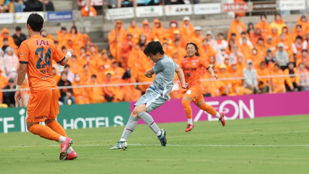 A: In meiner Vorstellung stand der Gegner direkt vor mir, als Spieler Tawara Tsukida den Ball spielte, daher dachte ich, ich würde den Ball verlagern und die Rückseite anvisieren. Aber da der Gegner auch meine Bewegung verfolgte, änderte ich meine Absicht und entschied mich, entschlossen in die Nähe des kurzen Pfostens zu schießen. Es ist gut, dass der Schuss gut gelungen ist.