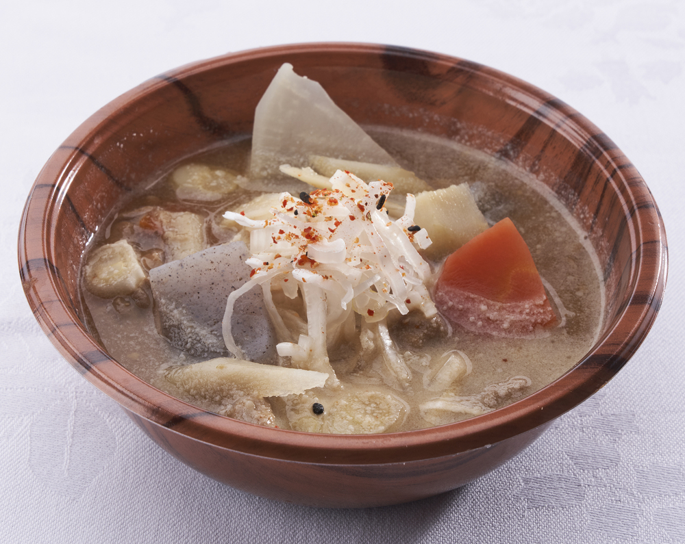 Diese Schweinesuppe wird mit dem schwer erhältlichen, in Tokio typischen Produkt „Tokyo X Schwein“ zubereitet und verfolgt das von AJINOMOTO CO., INC. vorgeschlagene Konzept „Love Vege®“ und „Suma Salz“.