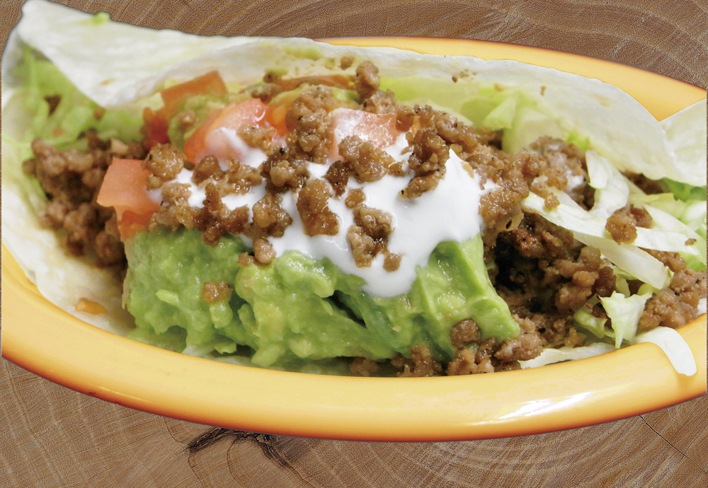 Dies sind süchtig machende Tacos, gefüllt mit frisch zerdrückter Avocado und hausgemachtem Tacos-Fleisch aus dem Verkaufsstand, eingewickelt in handgemachte Tortillas.