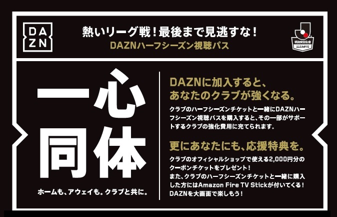 Ab Samstag, dem 19.05., 11:00, beginnt der Verkauf des „DAZN Halbjahres-Streaming-Passes“ im offiziellen Onlineshop und im FC Tokyo Rakuten Marktplatz. Ein Teil des Kaufpreises des DAZN Halbjahres-Streaming-Passes wird als Fördermittel an FC Tokyo zurückgeführt.