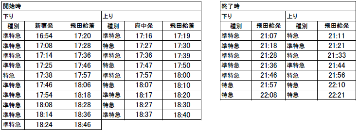Aufwärts… 9 Sonderzüge vom Typ Express und Semi-Express von Fuchu ab 17:16 bis 18:37
