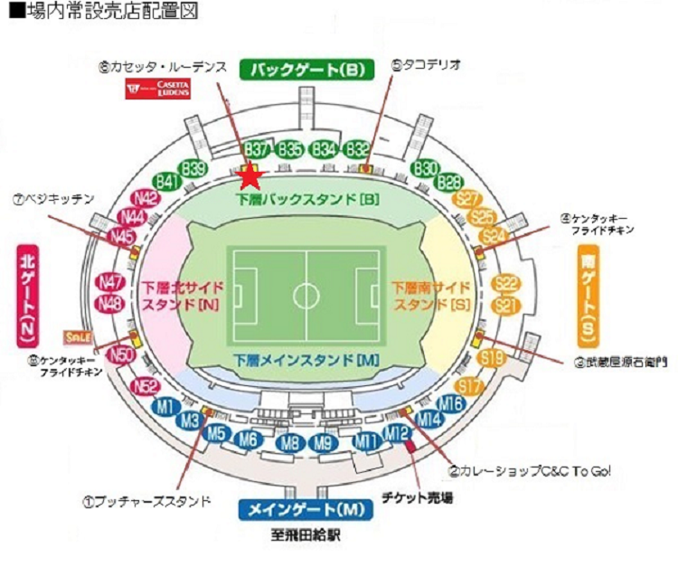 (3) Verkaufsstand „Casetta Ludens“ im Ajinomoto Stadium