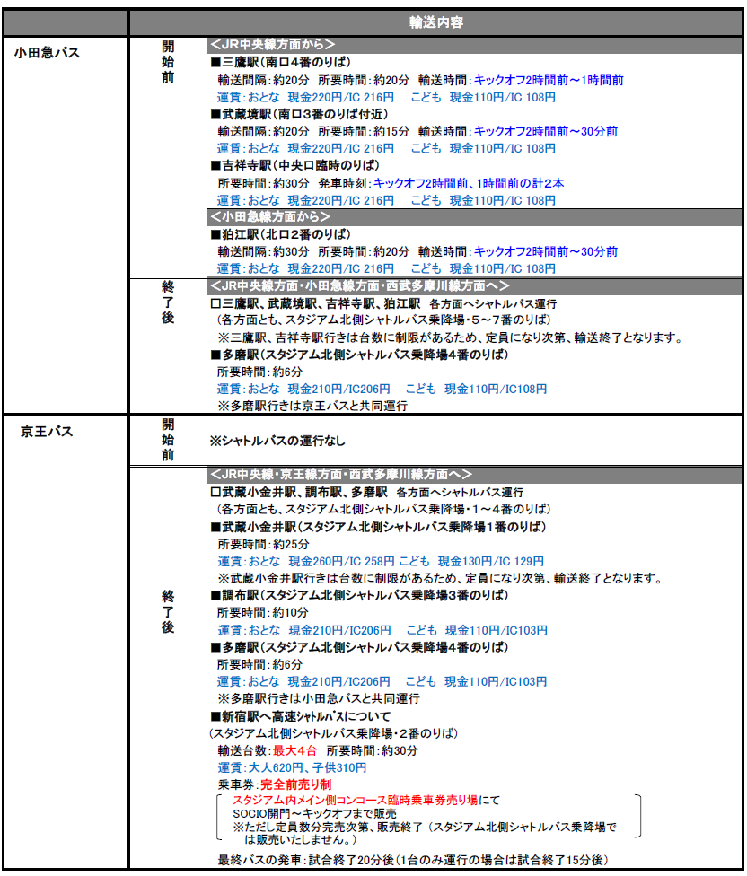 Am Sa., 20.10.2018, informieren wir über die Shuttlebus- und Linienbusverbindungen zum 30. Spieltag der Meiji Yasuda J1 League gegen Cerezo Osaka (Anpfiff 19:00 im Ajinomoto Stadium).