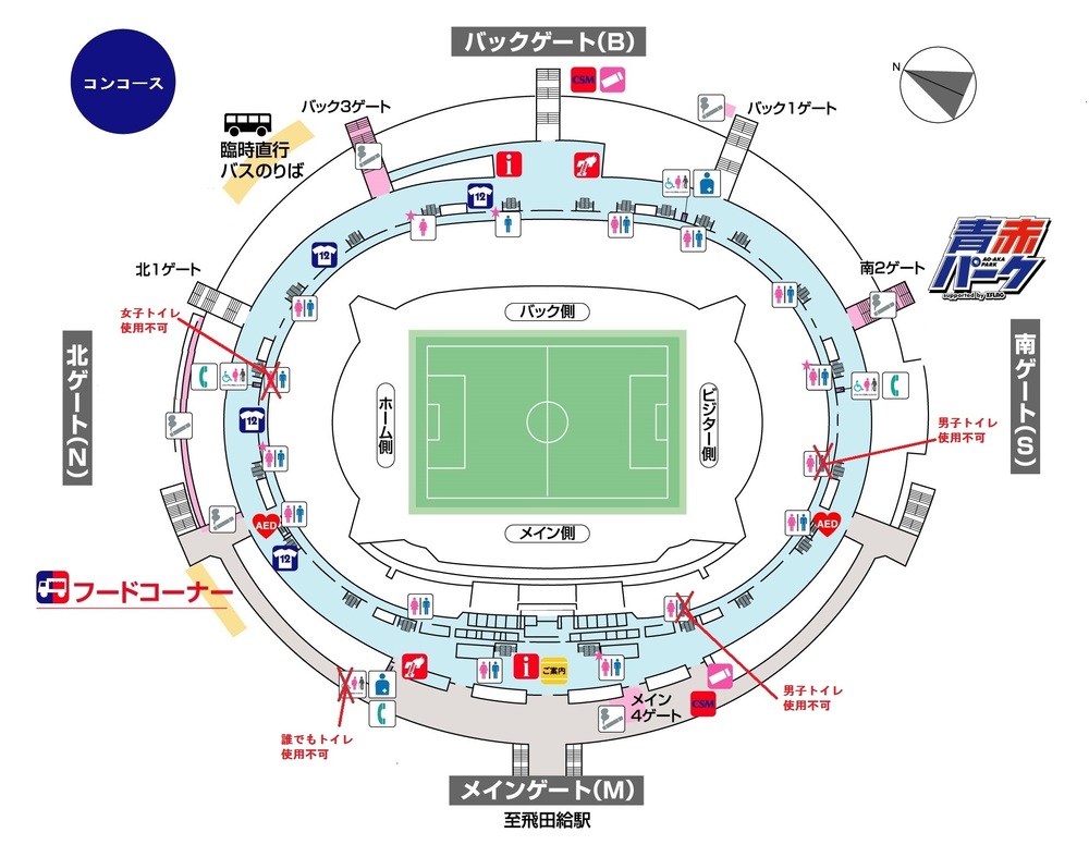 Bereich des Nordtors – in der Nähe des Eingangs N47 (Damentoilette nicht nutzbar)※ Nur am So., 10.03., beim Spiel gegen Tosu nutzbar