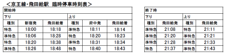 Abfahrt ab Tobitakyu Richtung Aufwärts 21:11–21:43, 4 Züge insgesamt (Schnell- und Semi-Schnellzüge)
