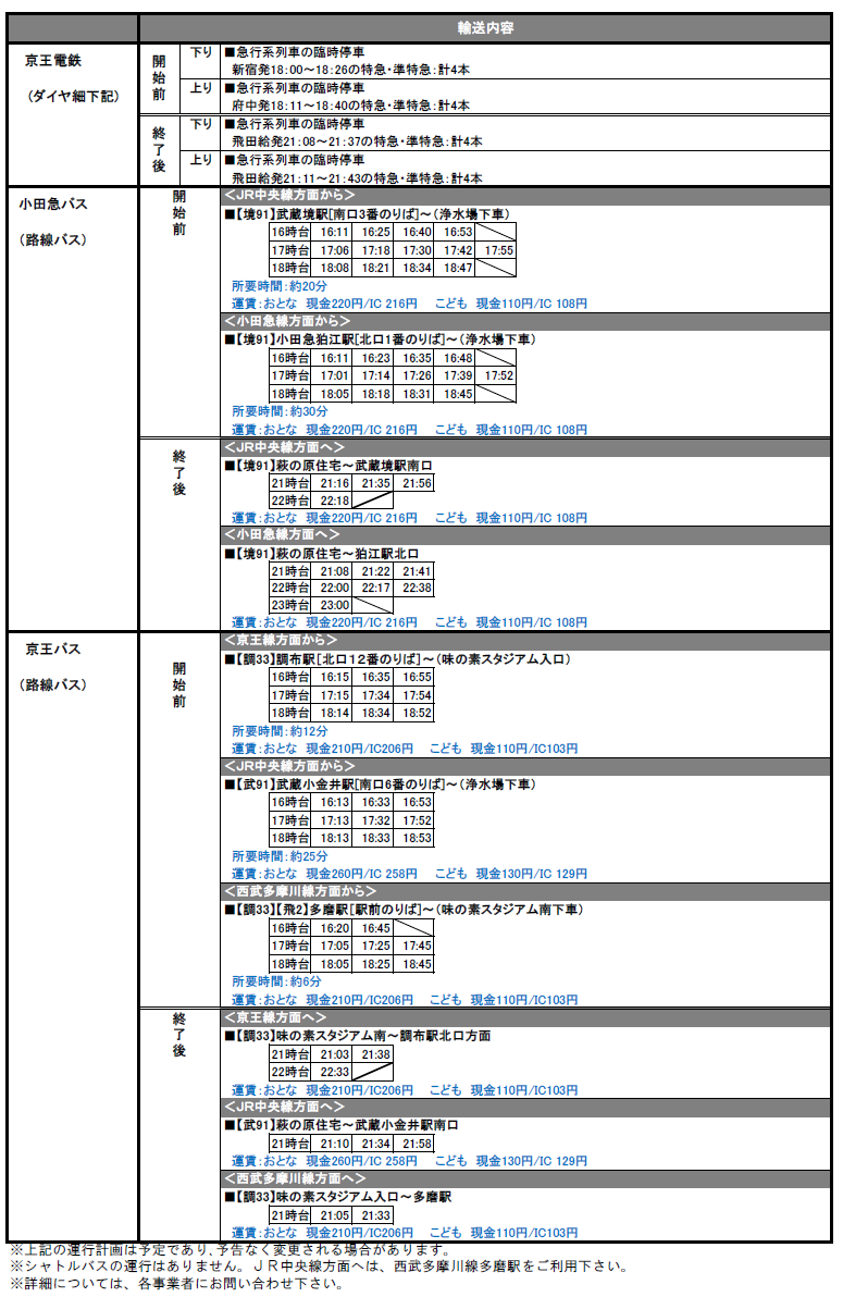 ※Der oben genannte Fahrplan ist vorläufig und kann ohne Vorankündigung geändert werden. Für Details wenden Sie sich bitte an die jeweiligen Betriebsstellen.
