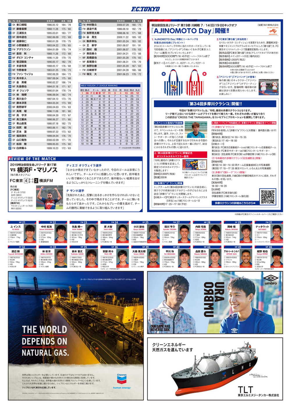 So., 07.07.2019 Meiji Yasuda J1 League, 18. Spieltag vs Gamba Osaka (Anstoß 19:00 / Ajinomoto Stadium) Offizielles Matchday-Programm, Informationen wie folgt.