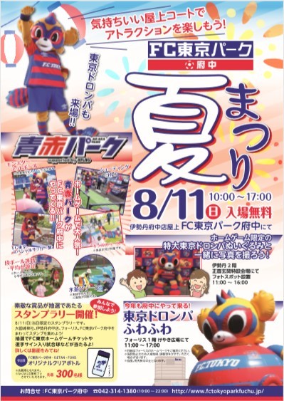 Der von FC Tokyo betriebene und verwaltete FC Tokyo Park Fuchu veranstaltet in Zusammenarbeit mit dem Isetan Fuchu Kaufhaus und der Fachgeschäftsmeile Fuchu Foris das "FC Tokyo Park Fuchu Sommerfest".