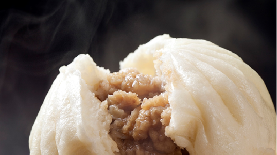 „Heiß und dampfend! Probieren Sie unbedingt das klassische chinesische Schweinebrötchen!“