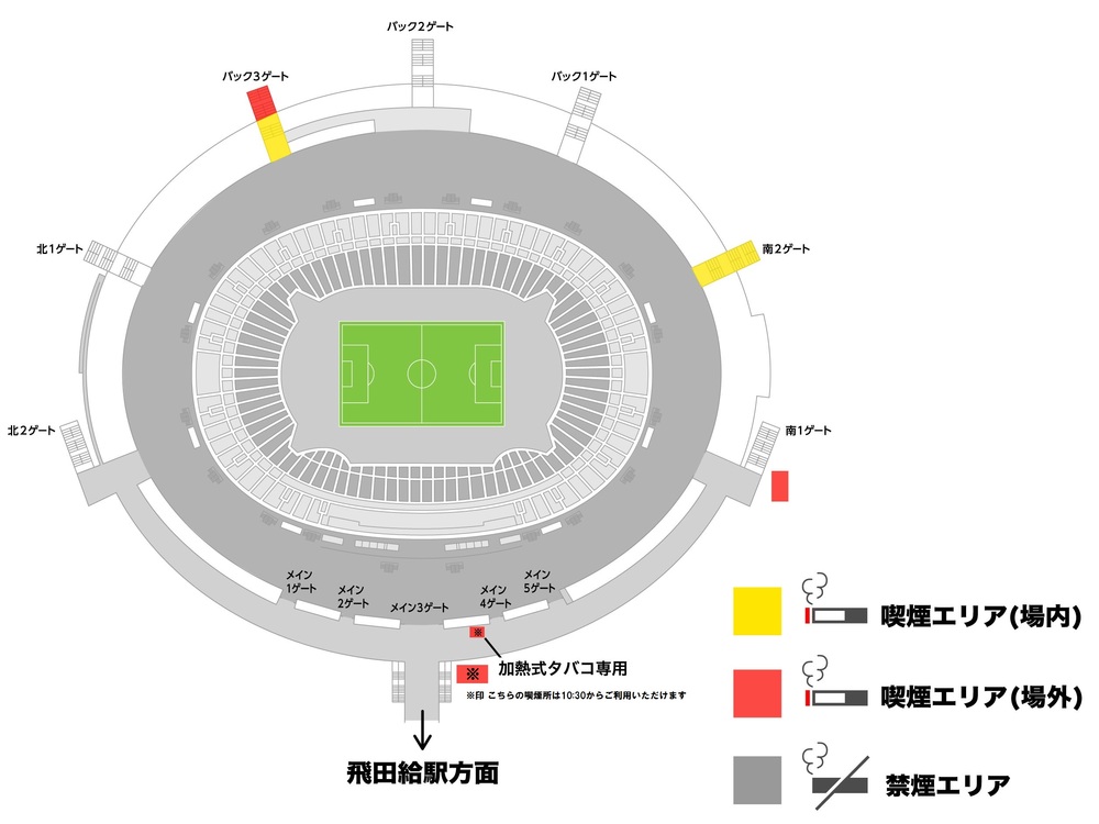 【Nachtrag vom 29.11. (Fr)】【Betriebsverbesserung】Änderung der Raucherbereiche im Ajinomoto Stadium