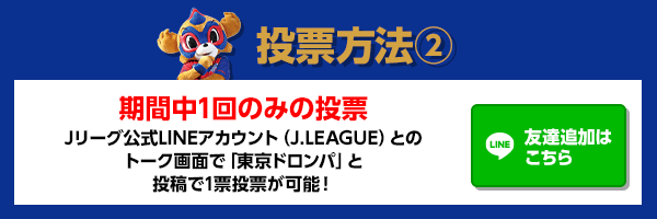 Geben Sie im Chatfenster der offiziellen J-League LINE den Begriff „TOKYO DOROMPA“ ein und senden Sie ihn!