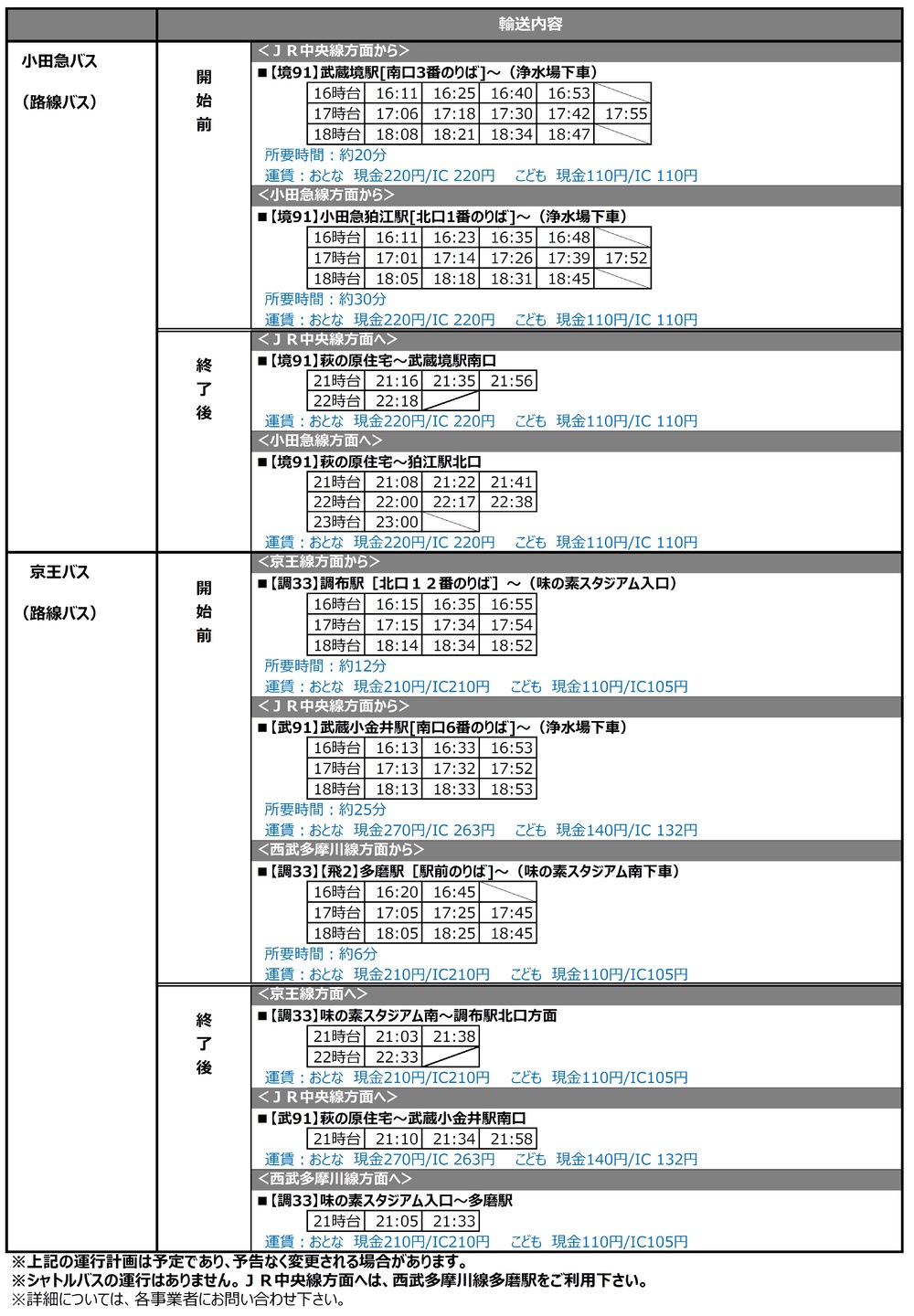 ※Der oben genannte Fahrplan ist vorläufig und kann ohne Vorankündigung geändert werden. Für Details wenden Sie sich bitte an die jeweiligen Betriebsstellen.