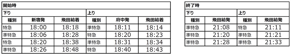 Aufwärts… Abfahrt Fuchu 18:11–18:40, Express- und Semi-Express-Züge / insgesamt 4 Züge