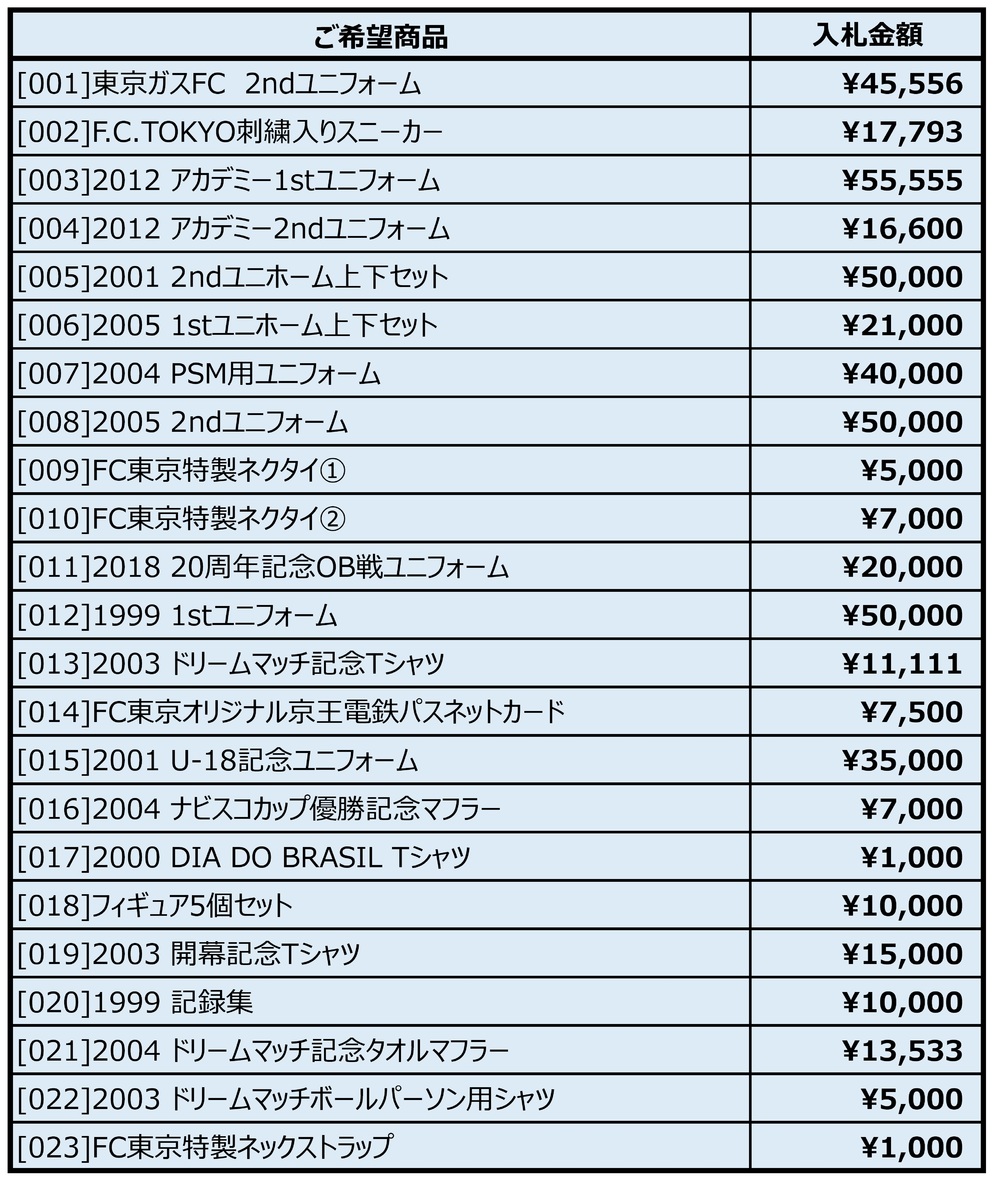Nach Ablauf der Gebotsfrist wird der Zuschlagsempfänger individuell von FC Tokyo unter der bei der J-League-ID registrierten E-Mail-Adresse kontaktiert.
