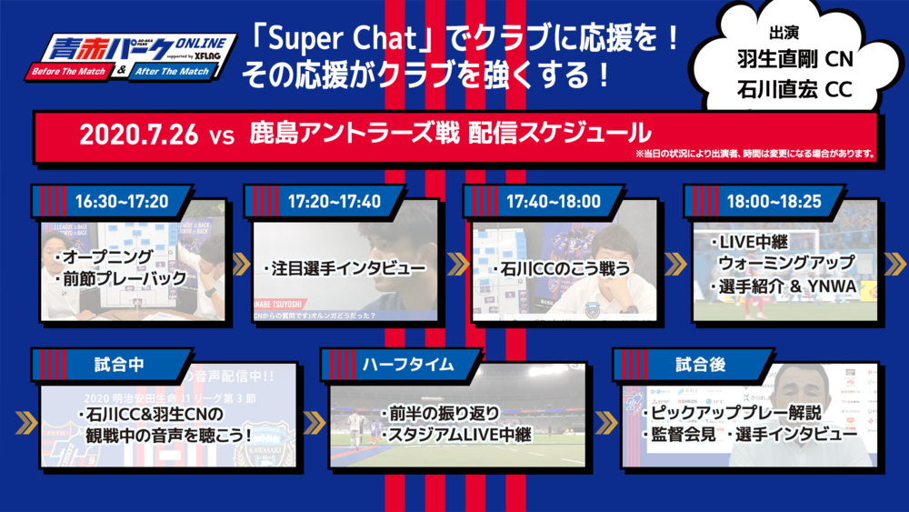 [26.07. (So) Spiel gegen Kashima] Ankündigung der Veranstaltung „AO-AKA PARK Online Before/After The Match supported by XFLAG“