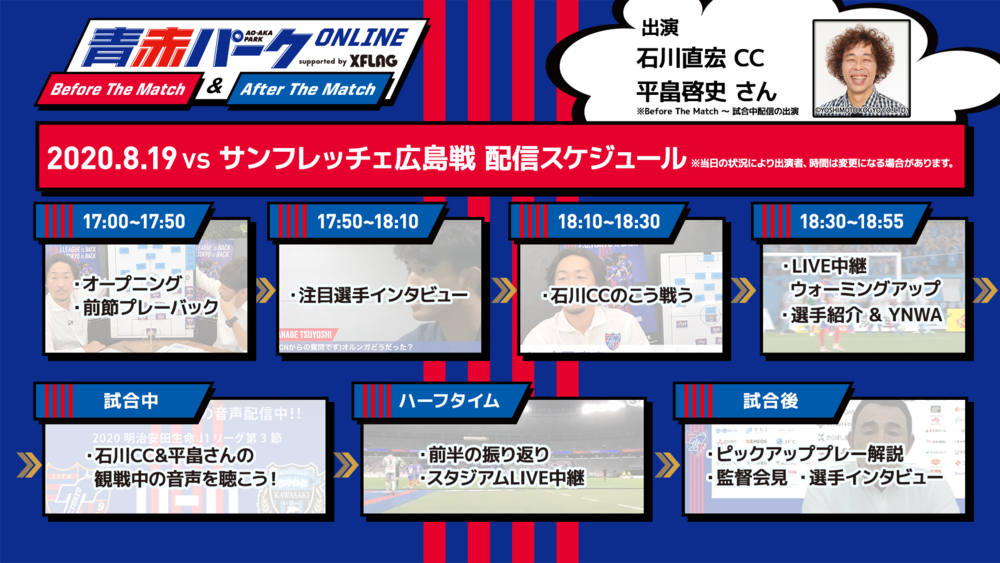 • Mi., 19.08. Heimspiel gegen Hiroshima: Ankündigung der Veranstaltung „AO-AKA PARK Online Before/After The Match supported by XFLAG“