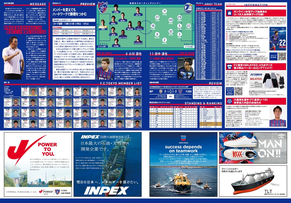 Mi., 16.09.2020 Meiji Yasuda J1 League 24. Spieltag vs Oita Trinita (Anstoß 19:00/Ajinomoto Stadium) Offizielles Matchday-Programm, Informationen wie folgt.