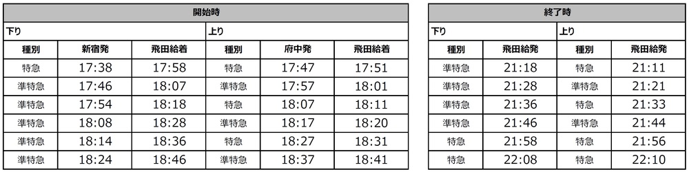 Aufwärts… Abfahrt Tobitakyu 21:11–22:10, Express- und Semi-Express-Züge / insgesamt 6 Züge