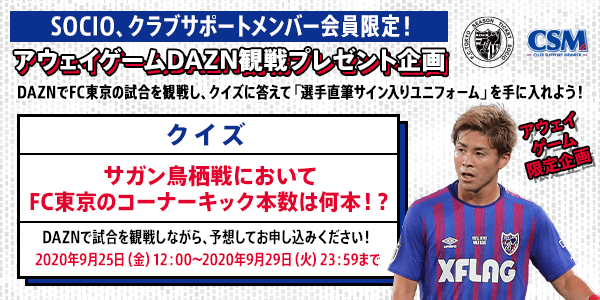 Damit SOCIO- und Club Support Mitglieder die Auswärtsspiele von FC Tokyo genießen und ansehen können, führen wir als besonderes Auswärtsspiel-Projekt die 6. Runde der Aktion „Erhalte ein Trikot mit originaler Unterschrift eines Spielers!“ durch.