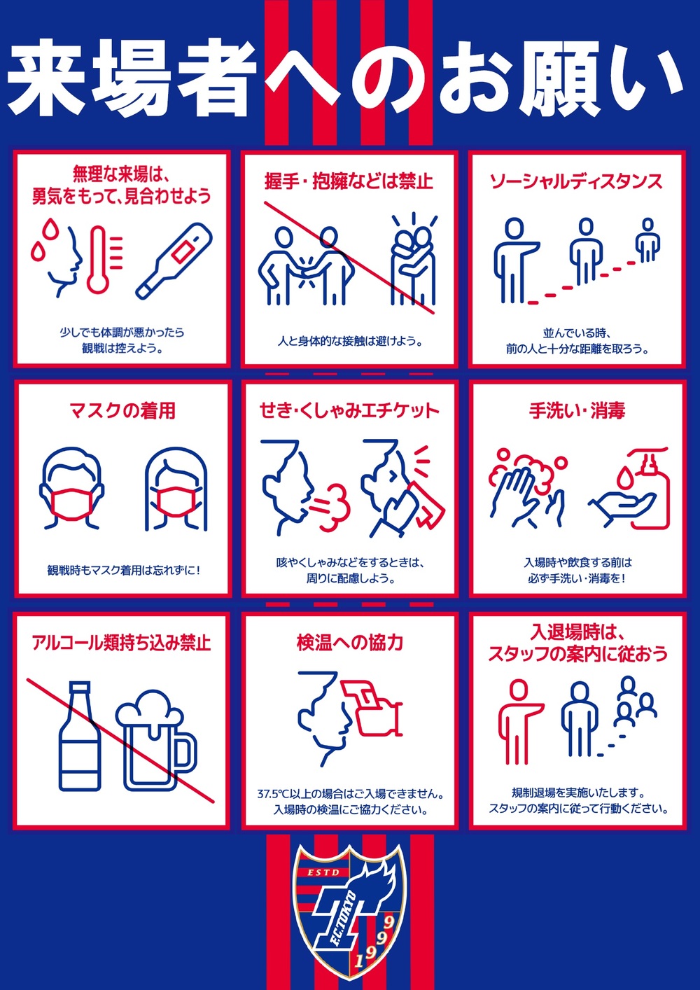 Bitte beachten Sie die einheitlichen Verbotsregeln der J-League (gemeinsame Verhaltensregeln und Vorschriften der J-League) sowie die FC Tokyo Fußballspiel-Betriebsordnung und die J-League Leitlinien zum Umgang mit COVID-19.