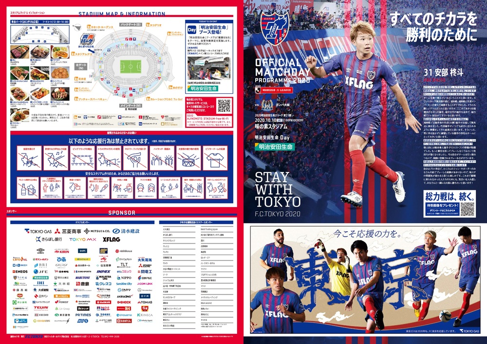 Sa., 10.10.2020 Meiji Yasuda J1 League 21. Spieltag vs Gamba Osaka (14:00 Anpfiff / Ajinomoto Stadium) Offizielles Matchday-Programm, Informationen wie folgt.