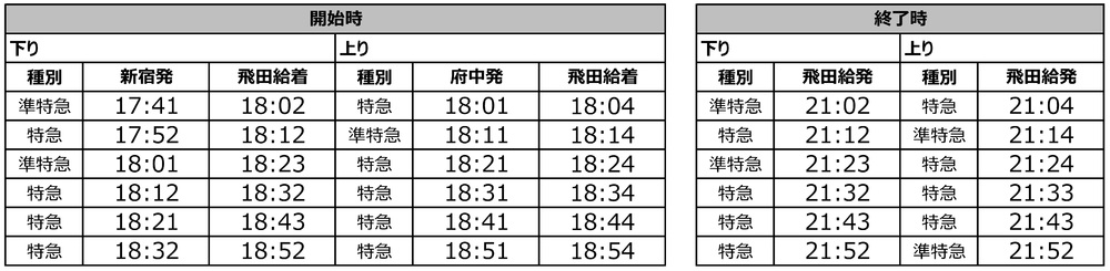 Aufwärts… Abfahrt Fuchu 18:01–18:51, Express- und Semi-Express-Züge / insgesamt 6 Züge
