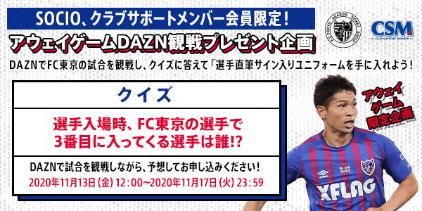 Damit SOCIO- und Club-Support-Mitglieder die Auswärtsspiele von FC Tokyo genießen und ansehen können, läuft die Sonderaktion „Erhalte ein Trikot mit originaler Unterschrift eines Spielers!“ nur noch zwei weitere Male!