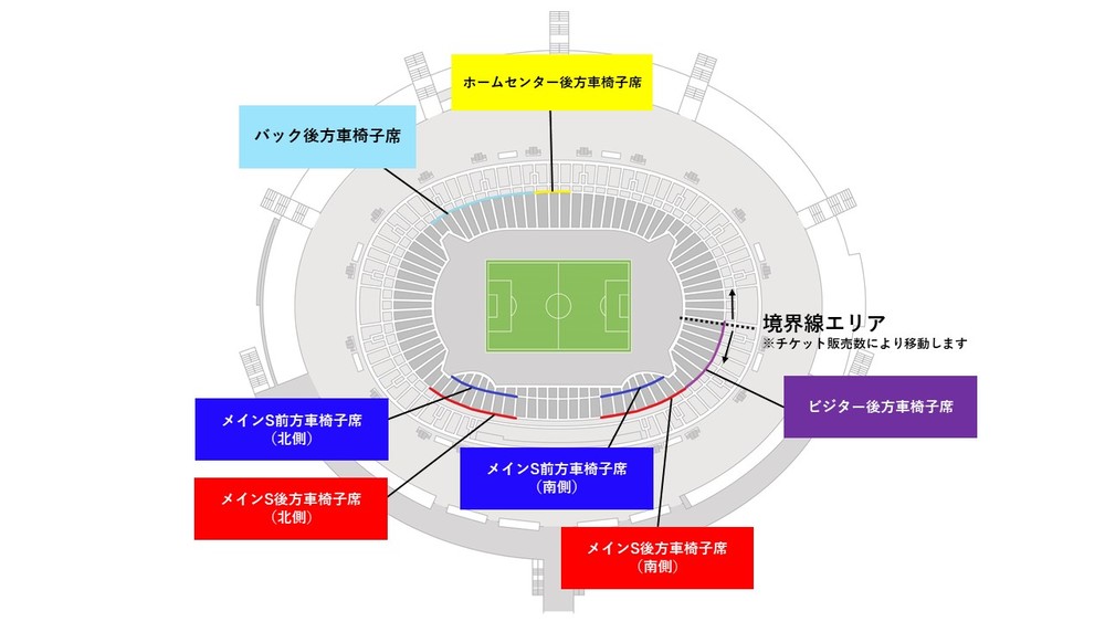 ※Bei Regenwetter sind Regenschirme nicht erlaubt. Wenn Sie auf den „Rollstuhlsitzen vorne im Haupt-S (Nord- und Südseite)“ zuschauen möchten, bringen Sie bitte einen Poncho oder eine Regenjacke mit.