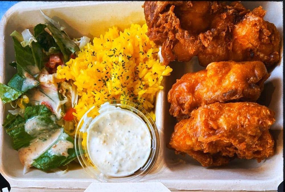 ・LUNCH BOX Rocket Chicken 3P + Salat + Reis 850 Yen