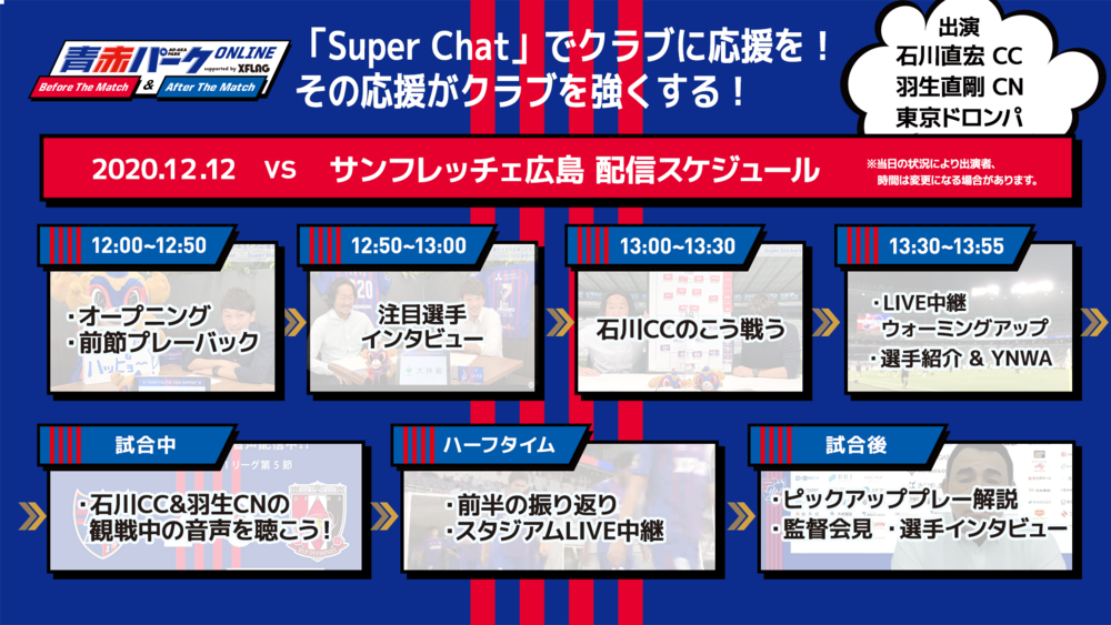 Do., 12.12. Heimspiel gegen Hiroshima: Ankündigung der Veranstaltung „AO-AKA PARK Online Before/After The Match supported by XFLAG“