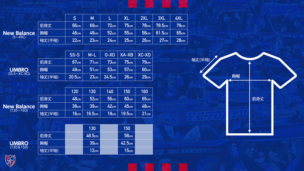 ※Die Größenangaben der Uniformen von 2020 (UMBRO) sind ebenfalls aufgeführt, sodass Sie diese zum Größenvergleich verwenden können.