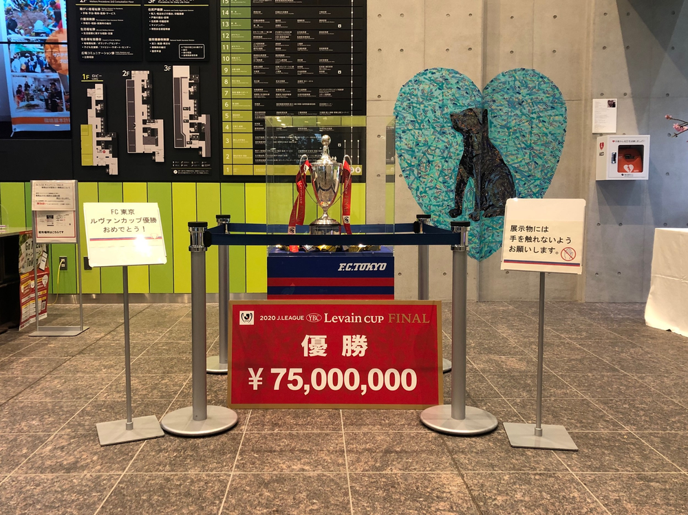 Das Levain Cup-Siegerpokal wird bis Mittwoch, den 17.02., neben dem Haupteingang im Erdgeschoss des Shibuya-Bezirksamts ausgestellt.
