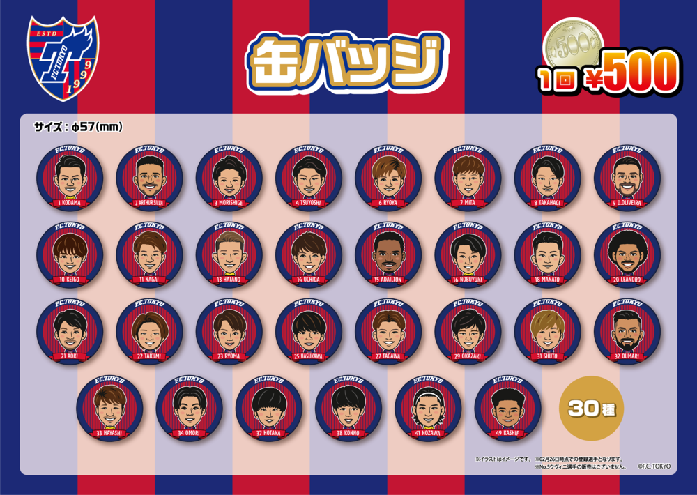 Mi., 10.03.2021 Meiji Yasuda J1 League, 3. Spieltag vs Vissel Kobe (Anstoß 18:00 / Ajinomoto Stadium), es wird ein Fanartikel-Verkaufsstand und eine Gacha-Gacha-Ecke geben.