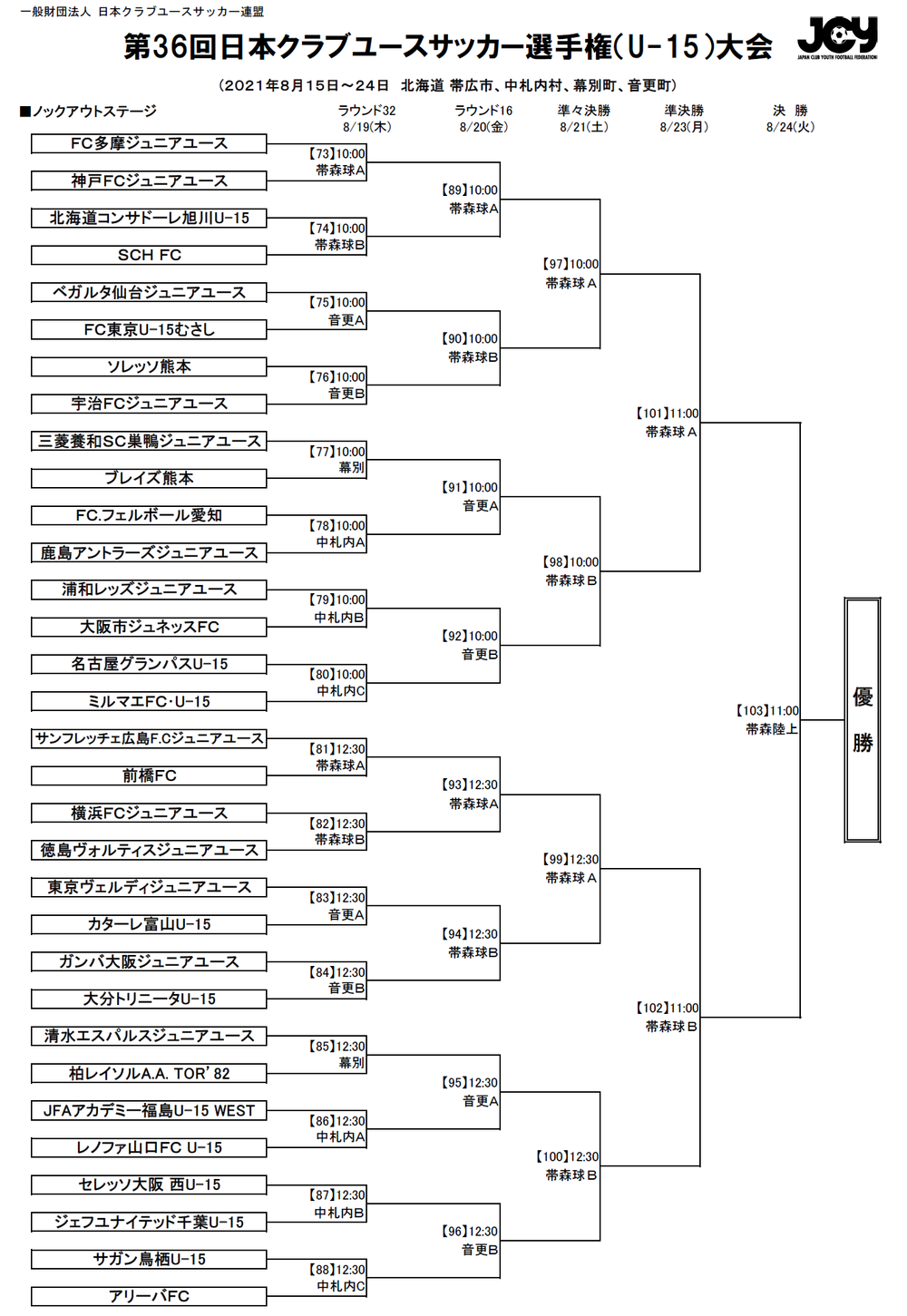 FC Tokyo U-15 Musashi und insgesamt 48 Teams, die Vertreter aus 9 Regionen landesweit sind