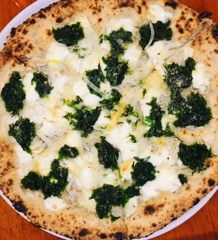 ・Enoshima frisch gekochte weiße Sardellen und frischer Nori Pizza: 900 Yen