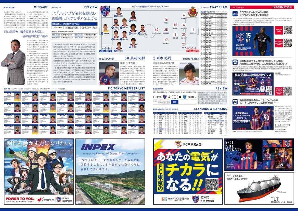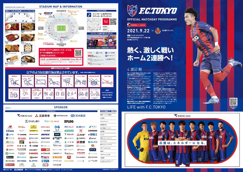 Mi., 22.09.2021 Meiji Yasuda J1 League 32. Spieltag vs Nagoya Grampus (Anstoß 19:00/Ajinomoto Stadium) Offizielles Matchday-Programm, Informationen wie folgt.