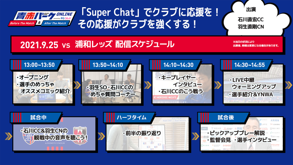 Sa., 25.09. Heimspiel gegen Urawa: Ankündigung der Veranstaltung „AO-AKA PARK Online Before/After The Match presented by mechacomic“