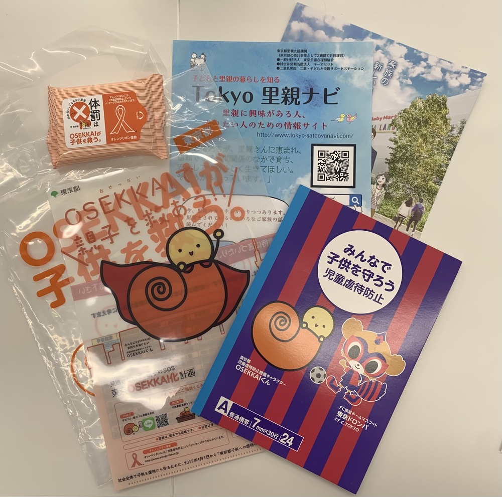 * Dieses Mal werden zusammen mit der Orange Ribbon Kampagne auch Informationsflyer zum Pflegeelternsystem der Präfektur Tokio verteilt.
