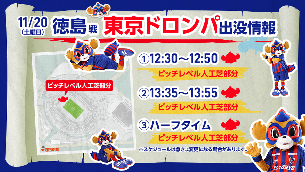 Sa., 20.11.2021 Meiji Yasuda J1 League, 36. Spieltag vs Tokushima Vortis (Anstoß 14:00 / Ajinomoto Stadium) wird TOKYO DOROMPA wie folgt erscheinen.