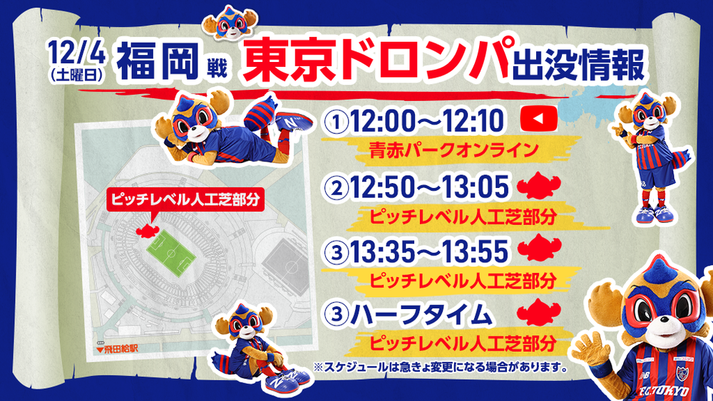 Sa., 04.12.2021 Meiji Yasuda J1 League, 38. Spieltag vs Avispa Fukuoka (Anstoß 14:00 / Ajinomoto Stadium) wird TOKYO DOROMPA wie folgt erscheinen.
