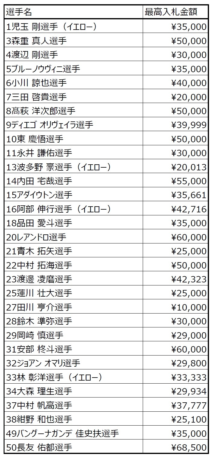 [Auktionsfrist naht] Zwischenbericht zur 1. Trikot-Charity-Auktion „Big Thank You Day ~Auch diese Saison, danke Tokyō!~“ (Stand 13.12.)