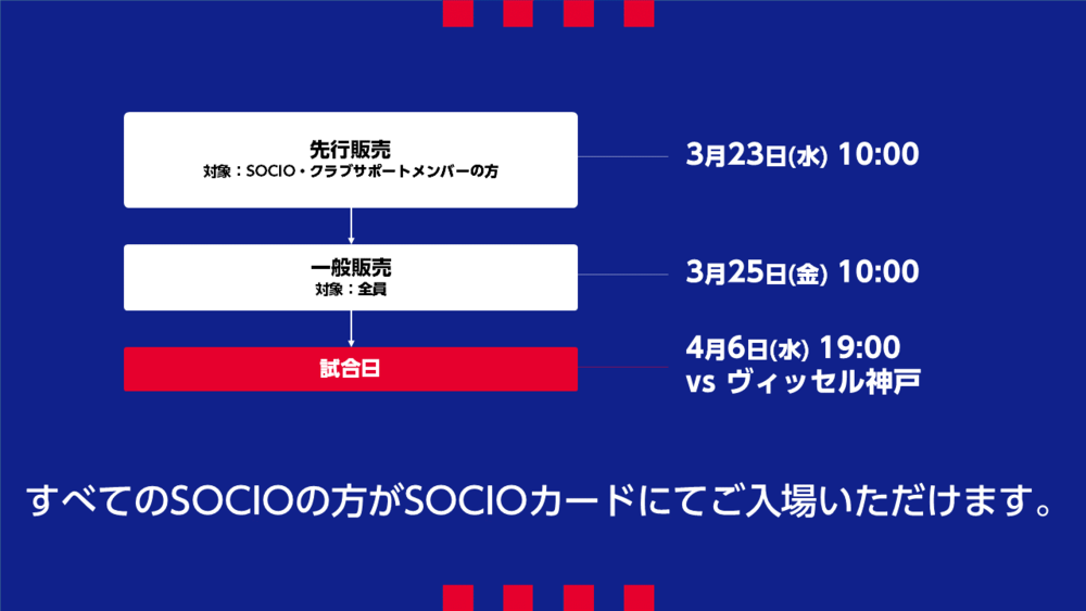 Beginn des Ticketverkaufs bis zum Anpfiff am Mi., 06.04. * Personen, die SOCIO-Tickets durch Übertragung erhalten haben, erhalten keinen bevorzugten Einlass