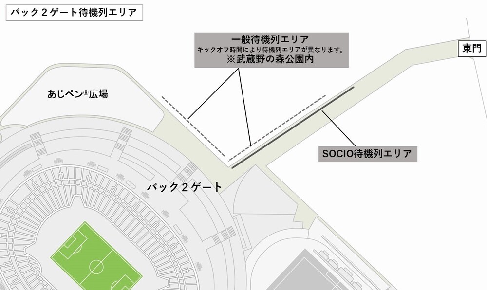 Der Warteschlangenbereich am Back 2 Gate und der Warteschlangenbereich für die Gästefreiplätze variieren je nach Spiel. Bitte überprüfen Sie den jeweiligen Standort für jedes Spiel in den Spielinformationen (auf der offiziellen Homepage).