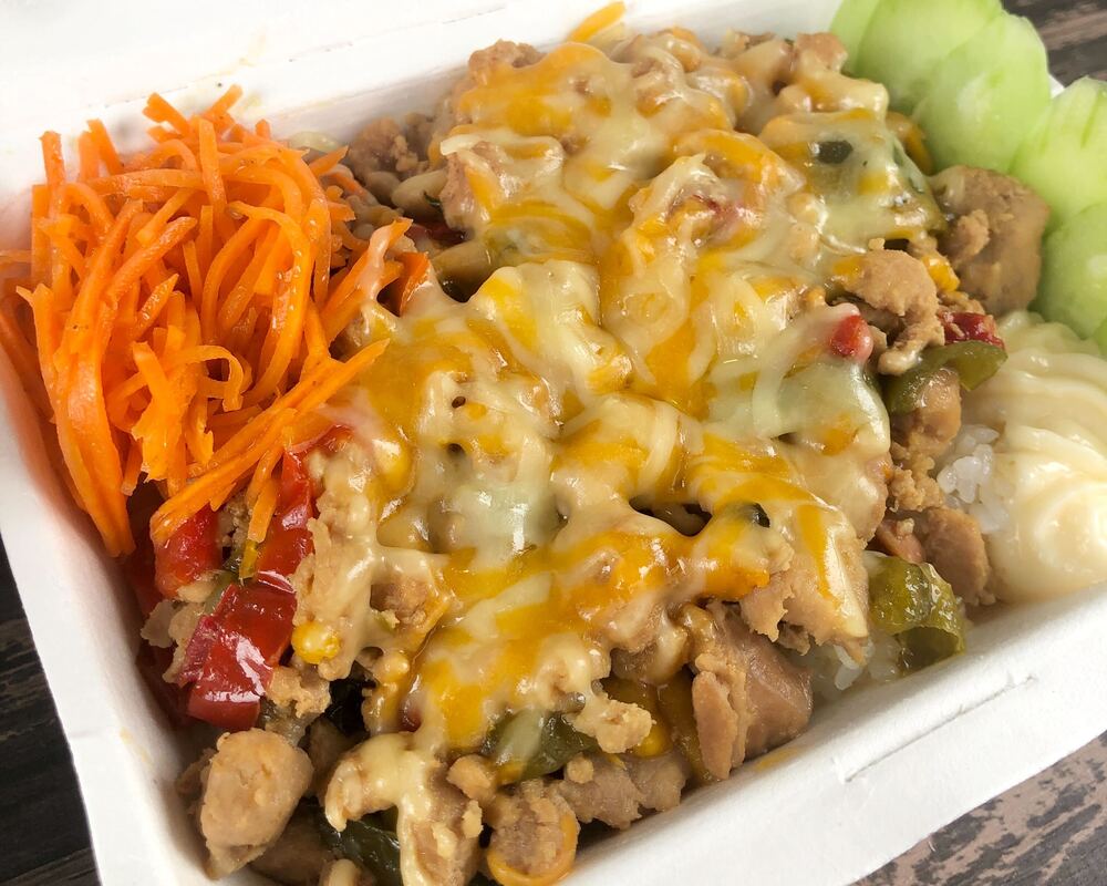 ・Halb-Halb Hähnchen-Schweinefleisch Bento 800 Yen